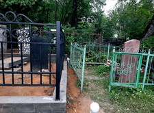 Затем наступил самый ответственный этап работы: монтаж ограждение. Работа по его установке опять-таки заняла достаточно долгое время, однако в результате чего по периметру могилы была установлена достаточно высокая статусная металлическая ограда, сразу же выделяющая место захоронения на фоне других участков. На фотографиях ниже представлен окончательный внешний вид могилы с разных ракурсов на момент завершения работ.