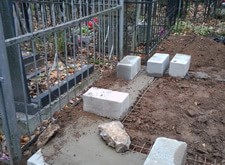 Этап непосредственно самой работы не представлен широким портфолио, работа была тяжелая и не всегда руки доходили до фотоаппарата. Могу лишь сказать, что было очень не просто доставить до могилы столько гранита. Ниже фото создания бетонного цоколя и этап укладки брусчатки.