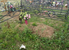 Изначально на данном участке находилось лишь металлическое ограждение, металлический же крест, и небольшой холмик над могилой.